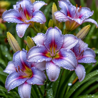Защита от вредителей и болезней: Лилейники относительно устойчивы к вредителям и болезням, но иногда могут поражаться слизнями, тлей или ржавчиной. При необходимости применяют соответствующие меры защиты.